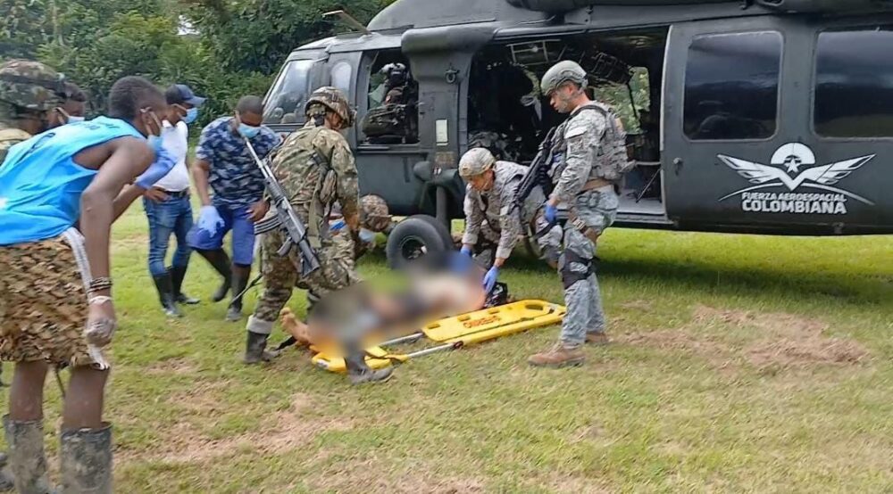 En una operación con enfoque humanitario, tropas del Ejército Nacional y una aeronave de la Fuerza Aeroespacial Colombiana auxiliaron y evacuaron a un miembro del ELN que resultó herido al manipular explosivos en el corregimiento de Chachajo, municipio del Alto Baudó.