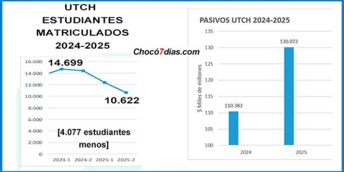 Entre los años 2024 y 2025 la Universidad Tecnológica del Chocó, UTCH, perdió 4.077 estudiantes y sus pasivos crecieron veinte mil millones de pesos.